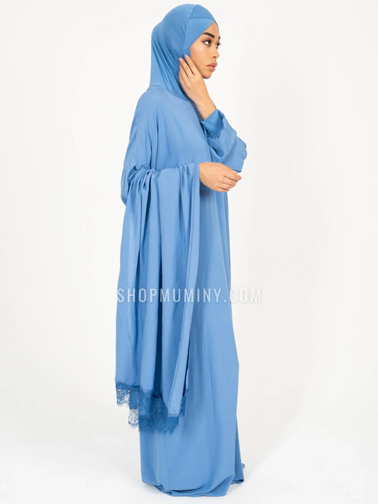 SaleOne-Piece Prayer Dress With Scarf: Blue Lagoon